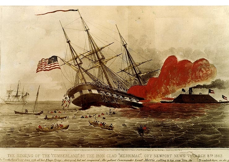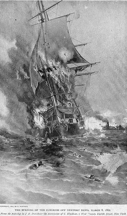On March 8, 1862, "CSS Virginia" attacked the Union blockading squadron in Hampton Roads, Virginia, destroying “Cumberland” and “Congress”. Early in the battle, “USS Minnesota” ran aground while attempting to engage the "Virginia", and she remained stranded throughout the battle. "Virginia", however, was unable to attack Minnesota before daylight faded.