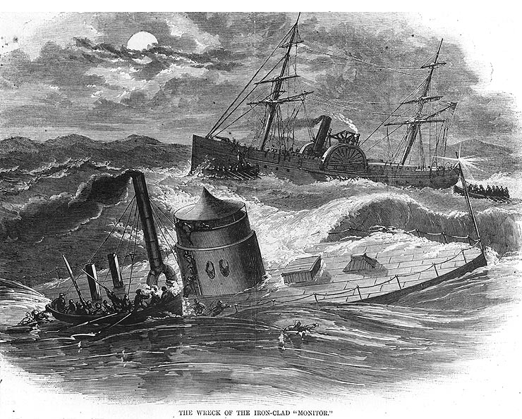 Because there were no duties for her at Hampton Road after she was towed to join the blockade forces off the Carolinas. Unfortunately USS “Monitor” met a big storm and sank. 16 men from her crew have been lost. While the design of “Monitor” was well-suited for river combat, her low freeboard and heavy turret made her highly unseaworthy in rough waters. The wreck now forms a protected Federal Marine Sanctuary.