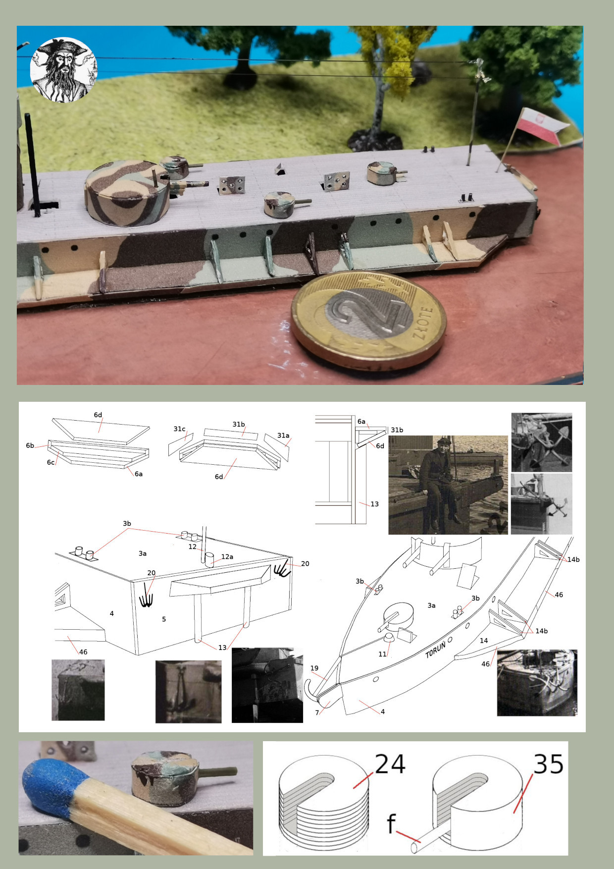 Model kartonowy okrętu ORP Toruń // skala 1:250 // Oferuję model kartonowy monitora rzecznego "ORP Toruń" w sprzedawany jako pliki pdf wysyłane mailem do kupującego. Model został opracowany na podstawie oryginalnych planów oraz oraz poniższego filmu.