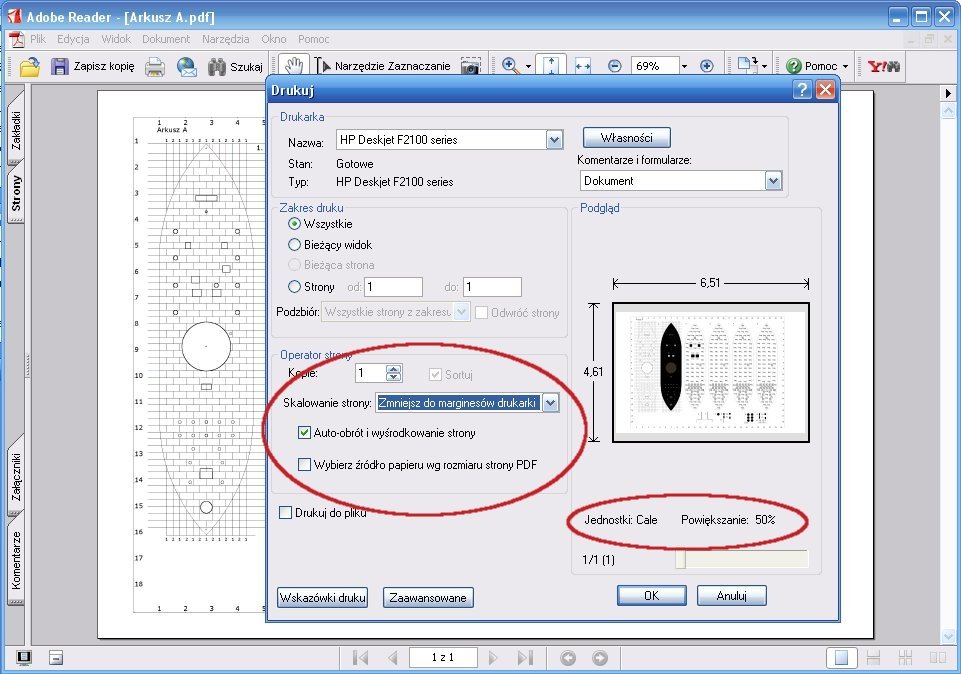 Przed rozpoczęciem drukowania należy sprawdzić, jak wyglądają domyślne ustawienia twojej drukarki. Dla przykładu drukarki HP przy wydrukach z plików PDF domyślnie ustawiają powiększenie na 95% tak aby dopasować wydruk do marginesów drukarki. Dlatego zanim zaczniemy drukować nasz model należy wejść w interfejs drukarki i tak zmienić ustawienia, żeby wydruk został wykonany w skali 1:1.