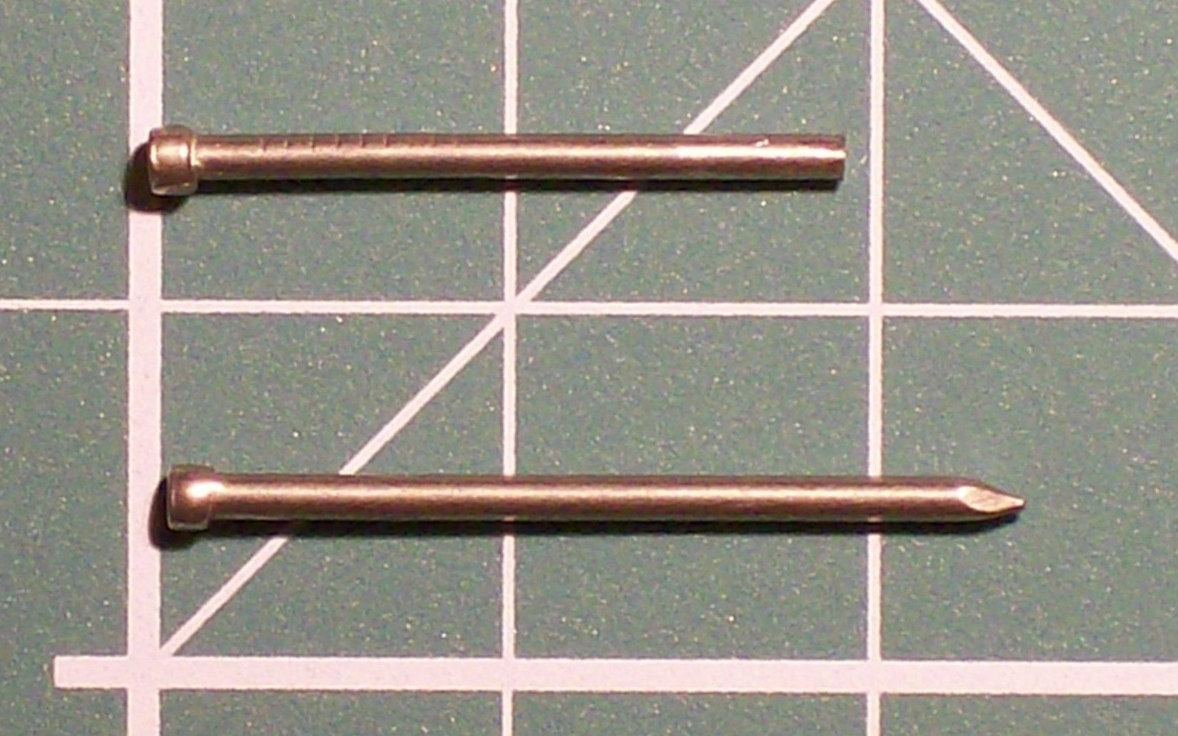 Czubek gwoździa tępimy go za pomocą pilnika do metalu. Następnie nasz stępiony gwóźdź przykładamy prostopadle do kadłuba i delikatnie pukamy młotkiem. Jako że czynność ta wymaga nieco wprawy dobrze jest przedtem wykonać parę prób na sucho.